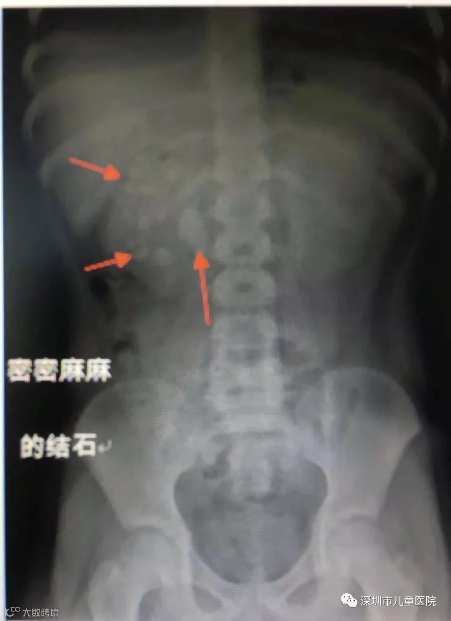 感觉到问题严重,当天他们就转到了深圳市儿童医院就诊。一番X光、B超等检查后,见多识广的医生也吓了一跳: