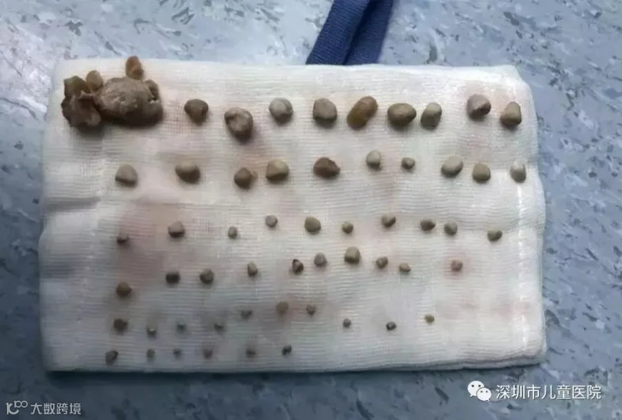 这些结石接近椭圆形,最大的一颗有鹌鹑蛋大小,最小的也跟绿豆差不多。手术后,医生将照片拿给小轩家人看后,他们也惊呆了。