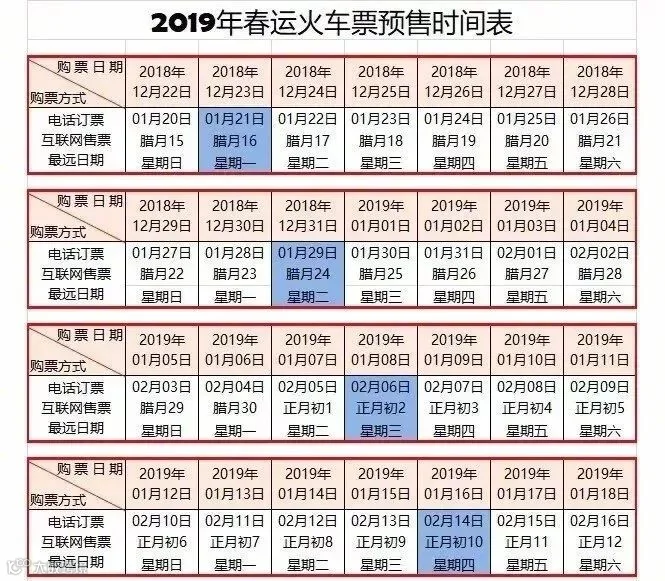 2019年春运购票时间表注意了