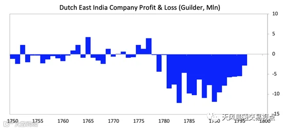 [26]此图表仅显示了荷兰东印度公司以“按国家/地区”报告的财务结果,例如荷兰。它不包括其在亚洲业务的收入和债务的一部分,但包括其在亚洲取回并在欧洲销售的商品的收入。