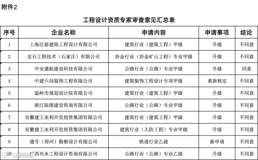 10项工程设计资质:同意1项,不同意9项;