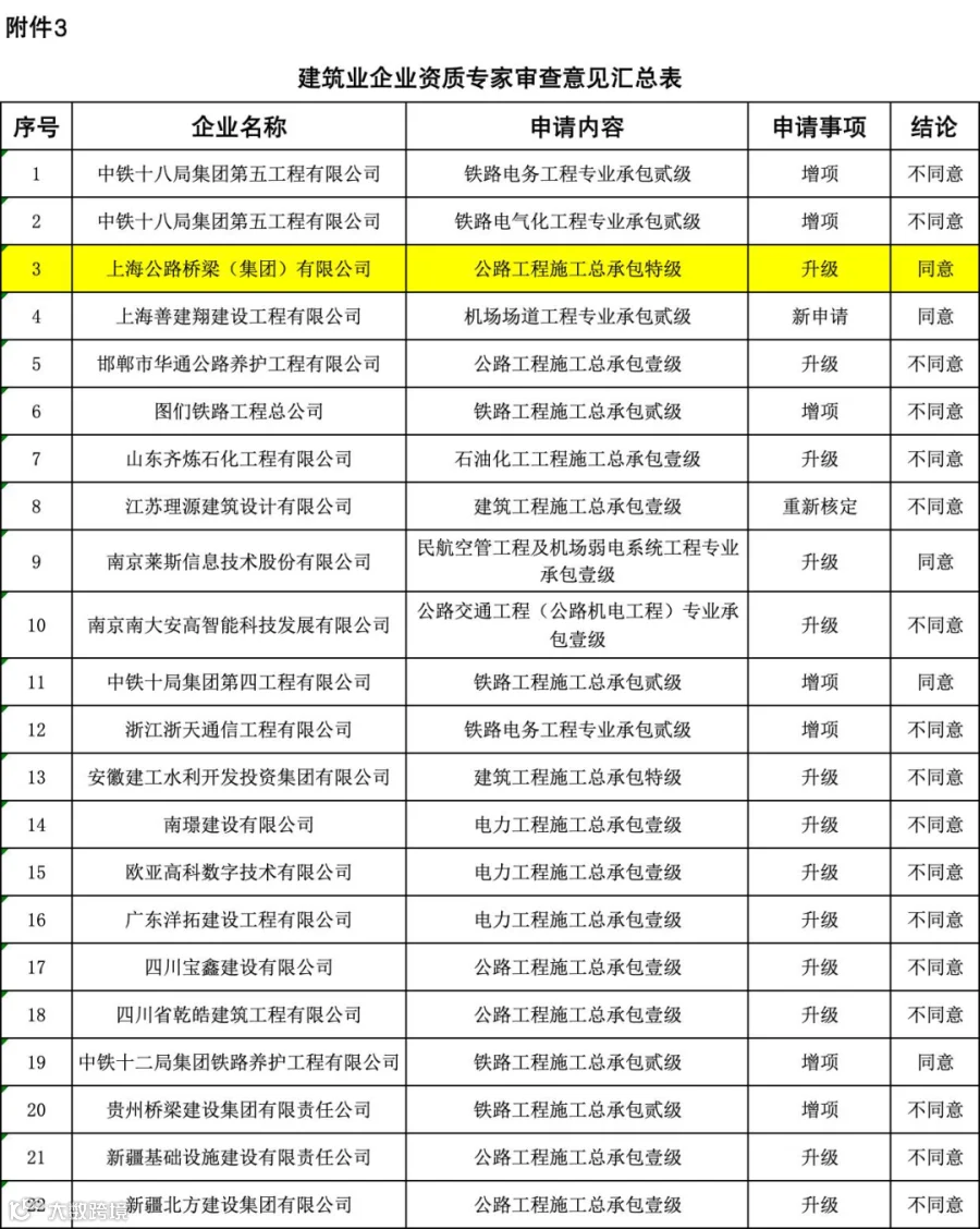 此外,上海公路桥梁(集团)有限公司申请公路工程施工总承包特级升级予以通过,成功升特。