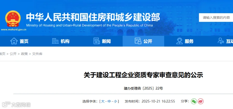 住建部发布最新建设工程企业资质专家审查意见。