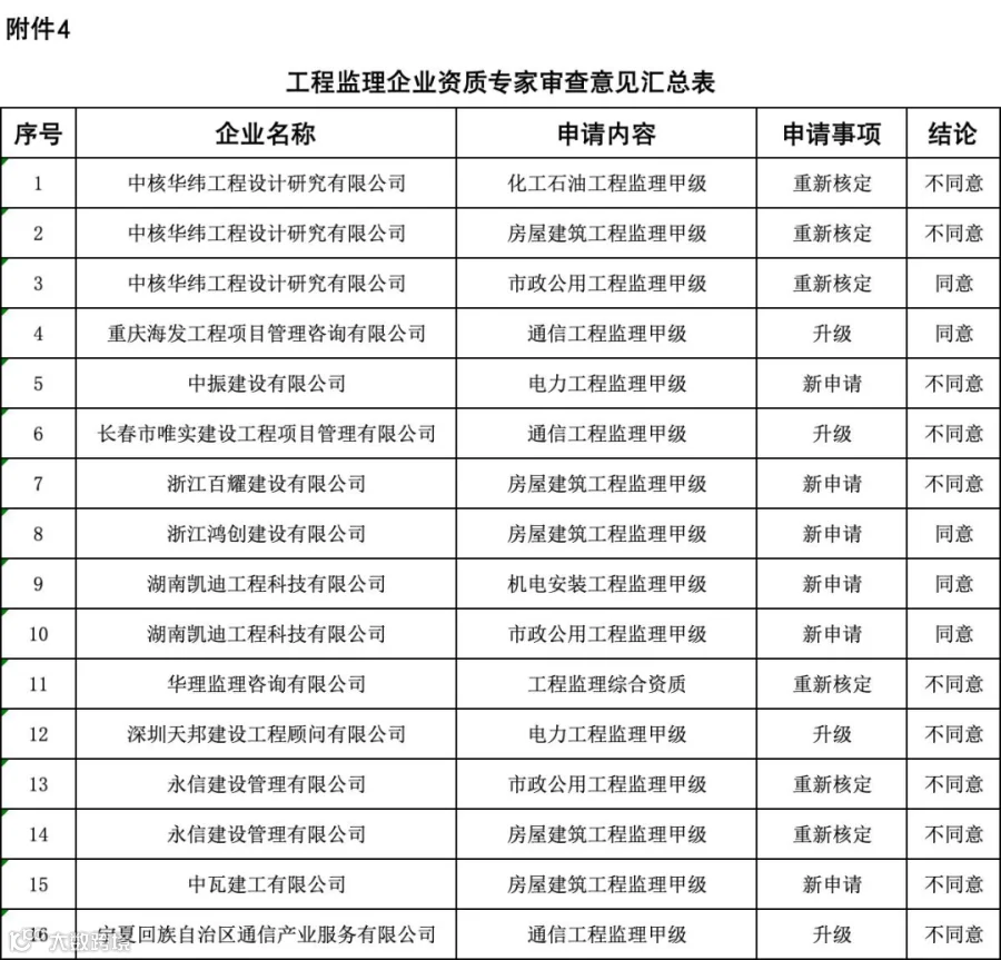 5项工程勘察资质:同意1项,不同意4项;