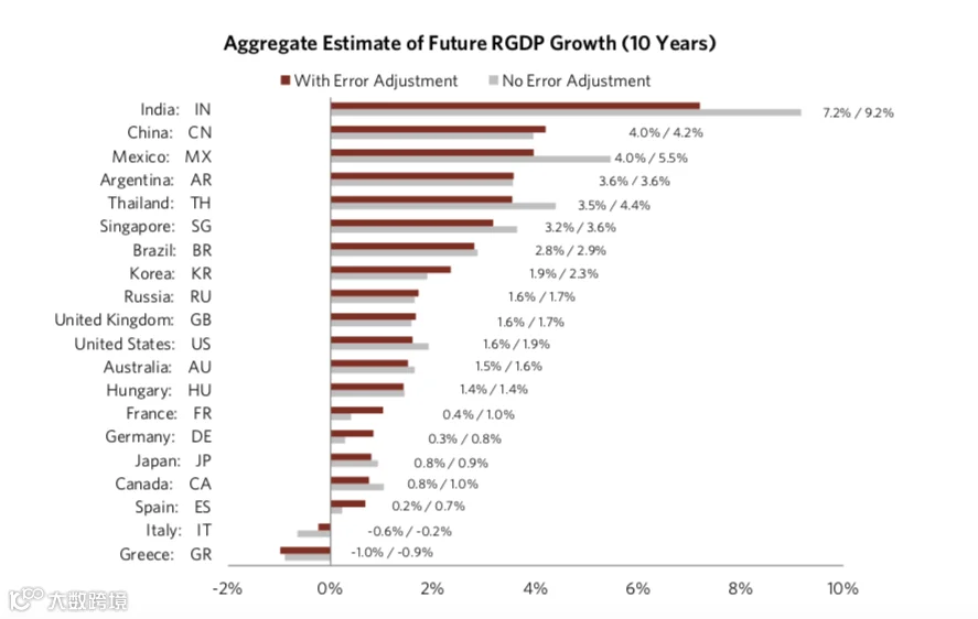 在美国内部来看,当下的财富差距,价值观差异和政治主张分歧,比我一生中所经历的任何时候都要大。通过研究1930年代和其他两极分化特别严重的时代,我了解到无论哪一方胜出(无论是主张改革的还是主张保守的,left or right),都将对经济和市场产生巨大影响。所以,我自然地想知道,这些财富、价值观和主张上的分歧和差距将在我们的时代造成什么样的影响。我对历史的研究告诉我,当财富和价值观差距巨大并且经济不景气时,关于如何分配产出和收入的冲突将会大幅增多。下一次经济衰退到来时,人们和决策者将如何相处和互动?这使得我特别担心,因为上文提到的中央银行通过削减利率以刺激经济增长的能力,现如今也受到了极大的限制。 除了这些传统工具(削减利率)已经无效之外,印刷额外的钞票和购买金融资产(现在称为“量化宽松”)也扩大了贫富差距,因为购买金融资产将会推高这些资产的价格,而往往能够购买金融资产的,是富人而不是穷人。 3) 国际财富与权力周期THE INTERNATIONAL WEALTH AND POWER CYCLE 在国际角度上来看,美国在我这一代人的一生中,第一次碰到了旗鼓相当的对手。 中国已经以多个方面比美国更具有竞争力,并且以比美国更快的速度实现经济增长。如果趋势继续下去,那么在作为一个世界强国的大部分、最重要的方面,它将比美国更强大。(或者至少将成为一个有价值的竞争对手。)我一生中大部分时间都在密切关注两个国家的动态,现在我看到了冲突在迅速增加,尤其是在贸易、技术、地缘政治、资本领域,以及经济/政治/社会形态等。我忍不住想知道,这些冲突以及由此产生的世界秩序变化将如何在未来几年里不断发展,并对我们所有人产生什么样子的影响。 这三股力量的同时出现,激起了我的好奇心。在我的研究中,我开始关注类似又三股力量同时出现的时期,例如1930-45年时期以及许多类似的历史时期。 举个详细的例子: