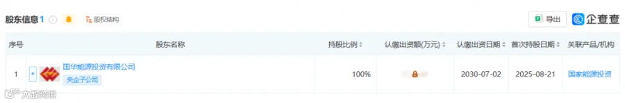 企查查信息显示,公司由国家能源集团全资子公司国华能源投资有限公司100%持股,是国家能源集团三级子公司。