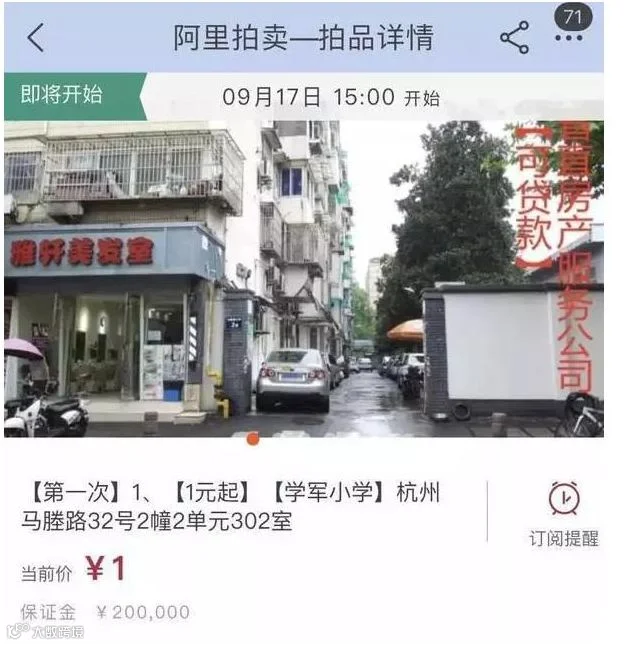 阿里拍卖还透露,“房子都是正常按照评估价去拍的,起拍价是市场价的八折左右,至于最后的成交价,就要看这个房子的热度”。