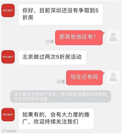 对于5折购房,后台表示,深圳还没有争取到5折房,但北京做过两次5折房活动。