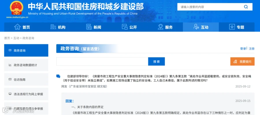 近日,住建部就 “重大事故隐患判定标准”、“危大工程” 相关问题做出答疑,汇总整理如下: