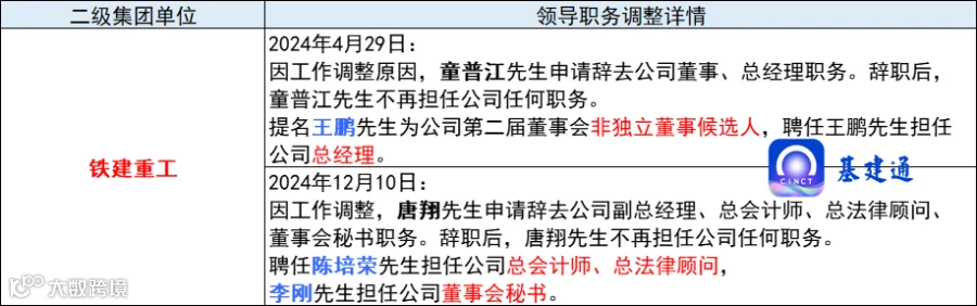 吕传峰同志改任中铁贵州公司一级助理,不再担任中铁贵州公司副总经理(集团所属单位领导正职级)职务。 -