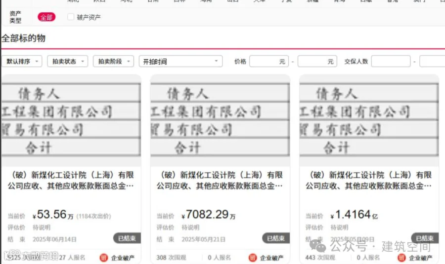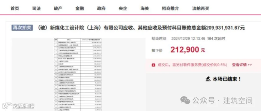 而值得注意的是,去年的时候,新煤化工设计院(上海)有限公司还有31笔共计2亿多的应收款债权也是打包拍卖,最终也是以21.29万元就成交,成交价也不高。