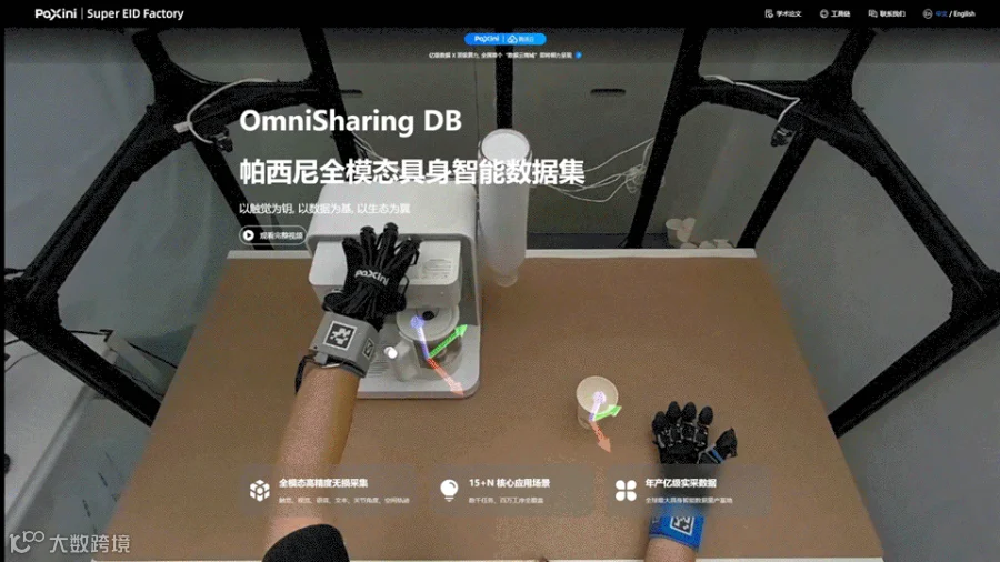 与此同时,帕西尼 Super EID Fctory 未来更有望成为推动中国乃至世界具身智能发展的“基础设施”。通过构建标准化、规模化的具身智能数据采集体系,生成高质量、全模态的具身智能数据集产品 OmniSharing DB,以及与腾讯云联手搭建全球首个具身智能“数据云商城”,为企业、科研机构提供高质量的具身智能训练数据和高效便捷的数据服务体系,有效降低全行业的研发门槛,加速创新成果的产业化进程。