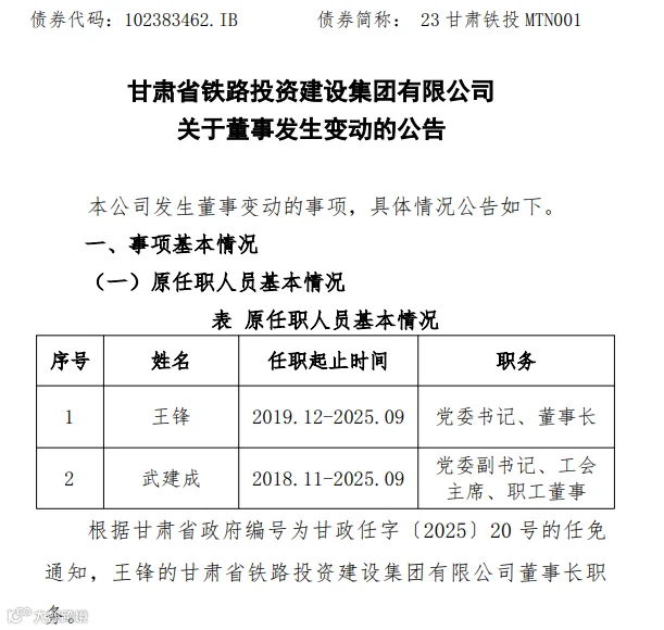 根据甘肃省政府编号为甘政任字〔2025〕20 号的任免通知,赵四辈任甘肃省铁路投资建设集团有限公司董事长,免去其丝绸之路信息港股份有限公司总经理、董事职务;