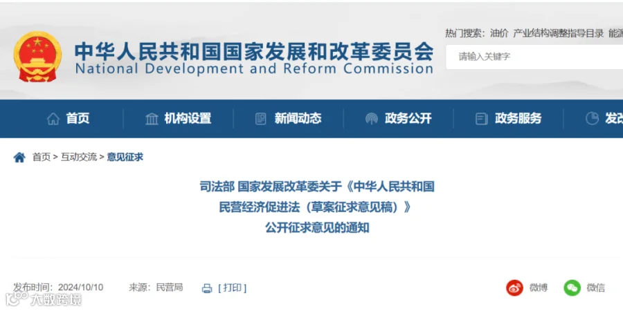 刚刚(10月10日),司法部、国家发展改革委在门户网站公布《中华人民共和国民营经济促进法(草案征求意见稿)》(以下简称草案),向社会公开征求意见。
