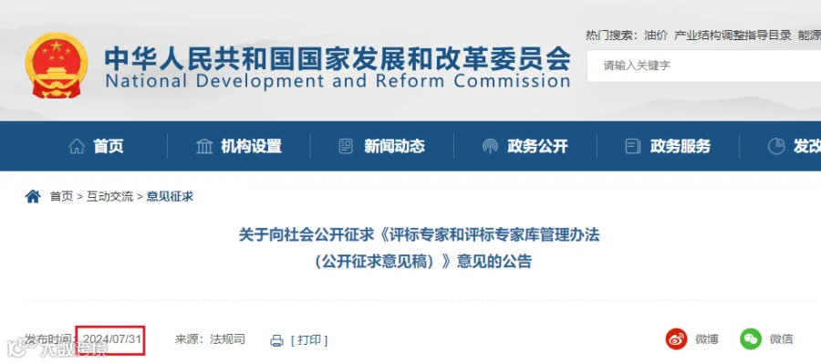 刚刚,国家发改委发布关于向社会公开征求《评标专家和评标专家库管理办法(公开征求意见稿)》意见的公告。