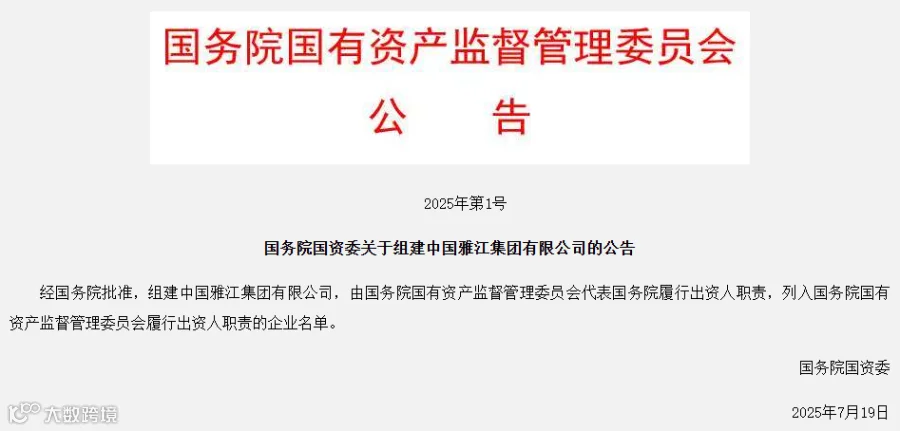 2025年7月,中国雅江集团有限公司成立大会在京举行,中共中央政治局委员、国务院副总理张国清出席并为公司成立揭牌。