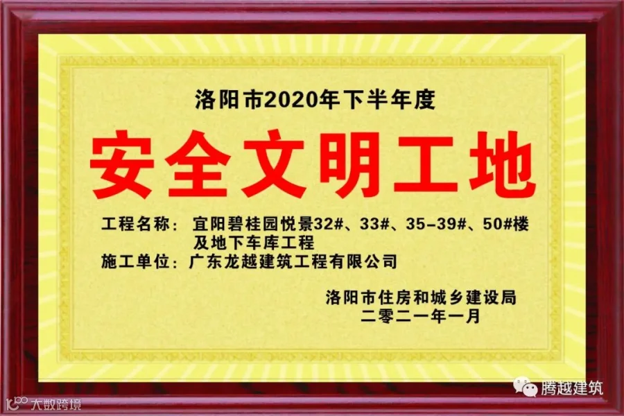2021年河南公司宜阳项目不断进步,年初被洛阳市评为“安全文明工地”,6月份又被宜阳县评为“实名制用工示范工地”。