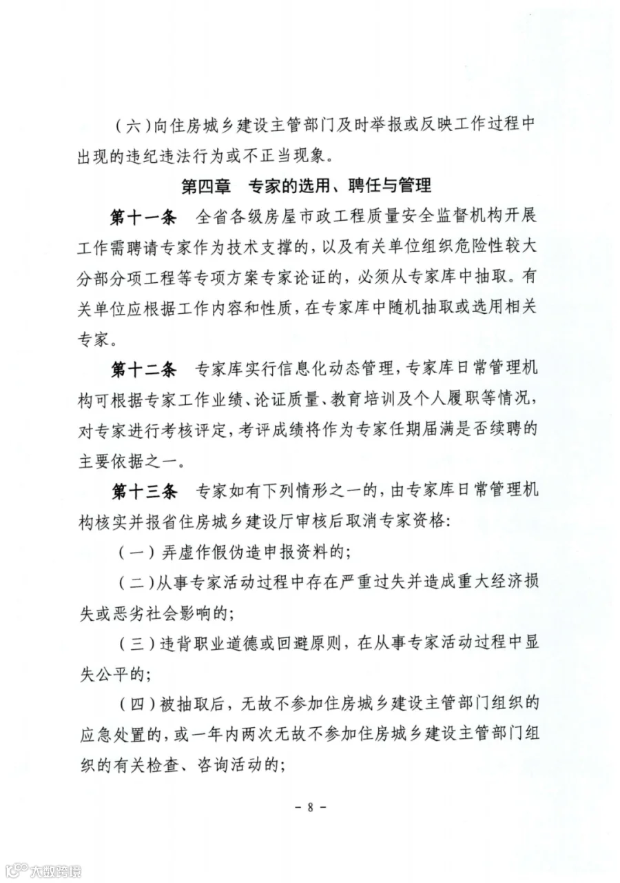 近日,青海省住建厅印发《青海省房屋市政工程质量安全专家库管理办法》,自2025年1月1日起施行,有效期至2029年12月31日。