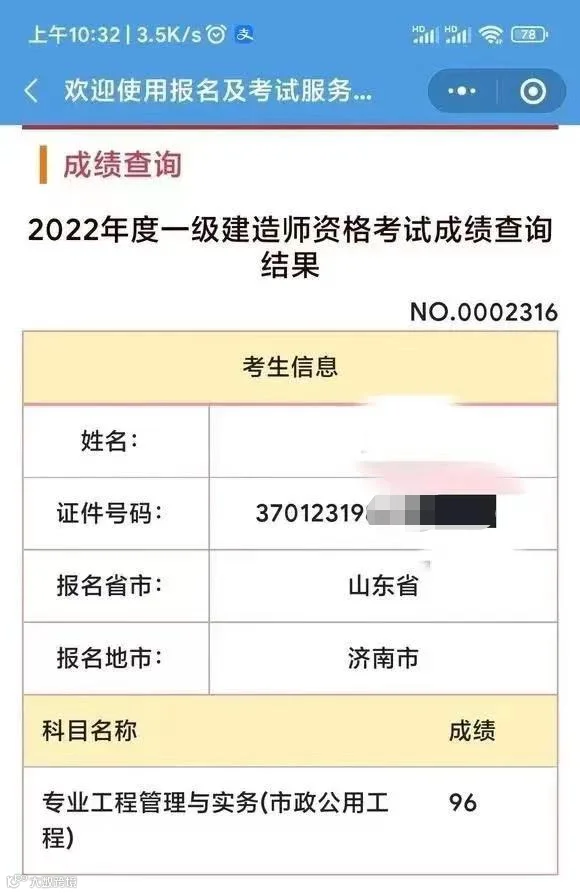 这位二建考生复核前客观题29.5分、主观题39分(总分68.5),复核后总分变为64.5。