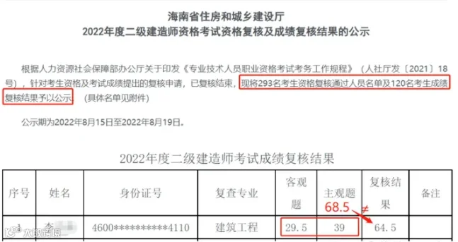 一个月后,海南公布22年二建合格标准:建筑科目65分……