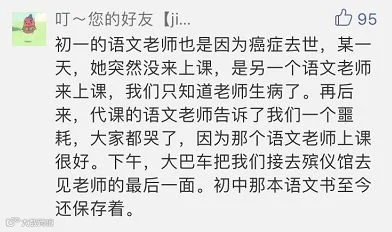 昨天的追悼会上,近百位郭老师的同事、学生、亲朋好友参加。有毕业多年的从诸暨赶过来的学生,有拄着拐杖前来吊唁的学生,更有只见过老师一面,却万般不舍的初一学生家长。