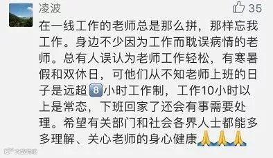 一位河北的王老师坦言:“社会和家长对老师的期待特别高,有些人认为孩子呈现出的一切问题,都是教师的问题。其实,家庭对孩子的影响是更重要的根源,不能把所有问题都归结于我们教师,每个家庭都有教育孩子的责任。”