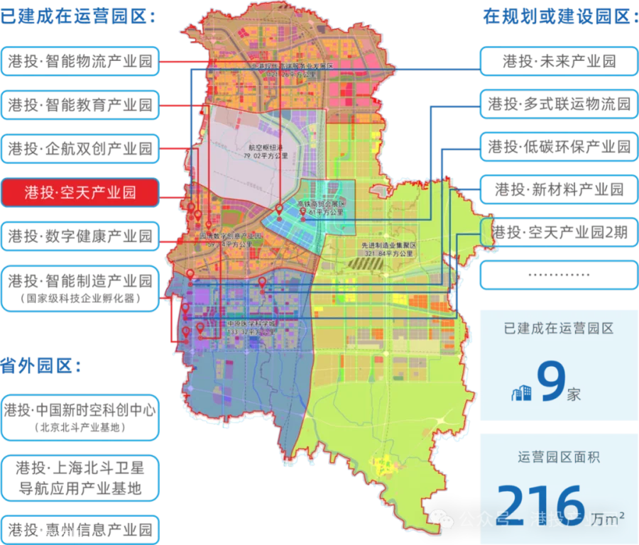 河南港投产业园管理有限公司(以下简称港投产业园)是航空港投资集团旗下全资控股子公司,以航空港投资集团十余年的产业园开发运营经验积累为依托,整合优质产业资源,推动产业转型升级,实现产业和城市高度融合发展。截至目前已建成在运营园区9家,运营园区面积约216万平方米,合并资产总额约100亿元。凭借在产业园区运营及管理方面的强大实力和丰富经验,开发运营的园区吸引了众多高科技领军企业,包括龙芯中科、联创电子、领益智造、
