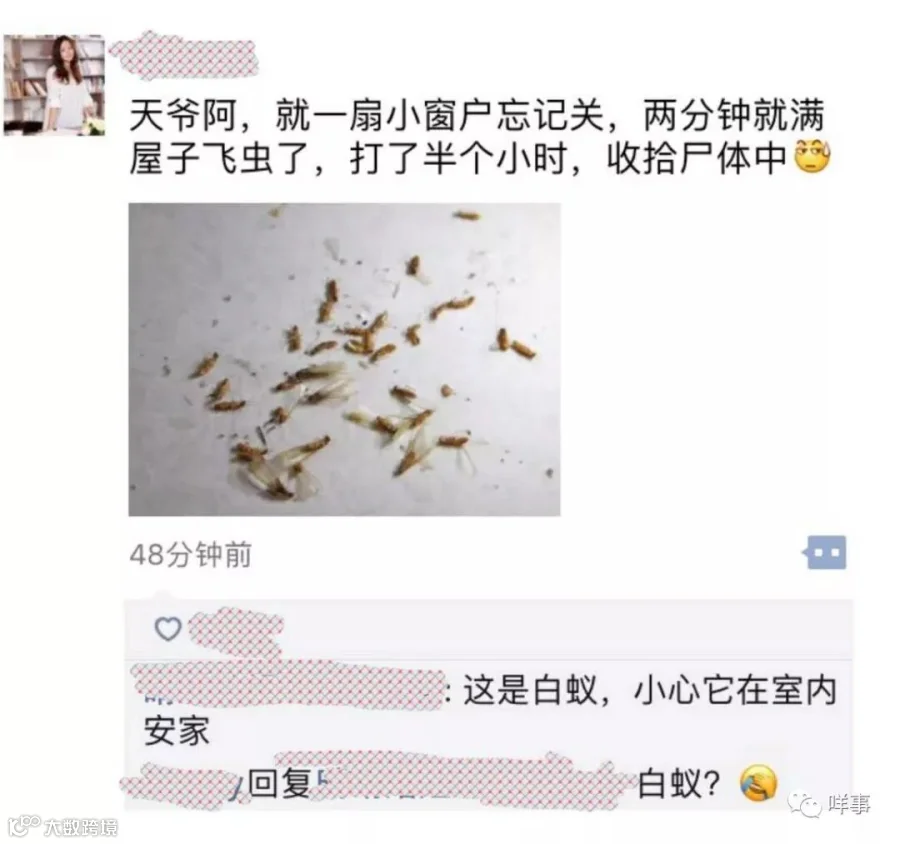 吃碗面飞进碗里十几只白蚁,