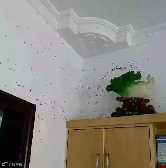成群的飞蚁飞进家里,