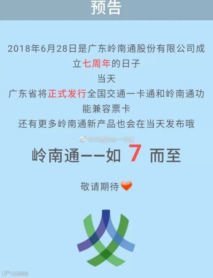 6月28日,广东将正式发行全国交通一卡通和岭南通功能兼容票卡,可在全国支持互联互通系统的公交、地铁上使用!