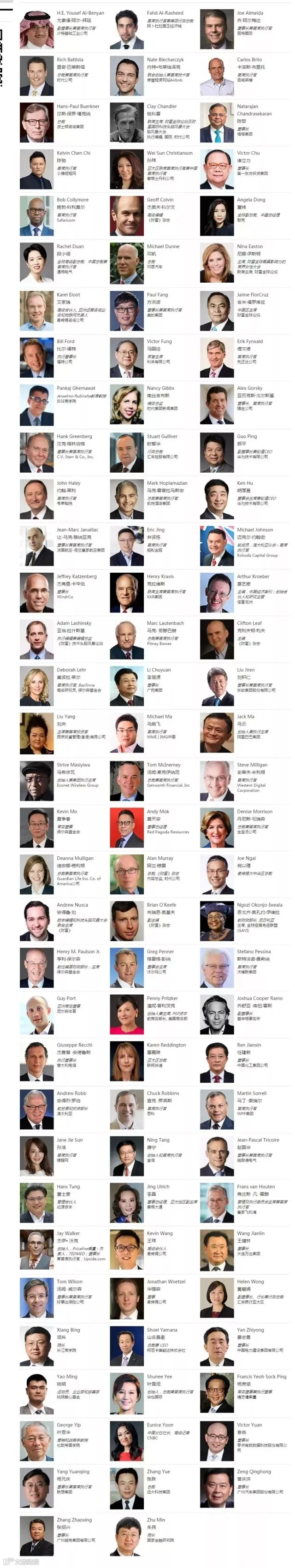 最重要的还是参加这次财富论坛的大咖,