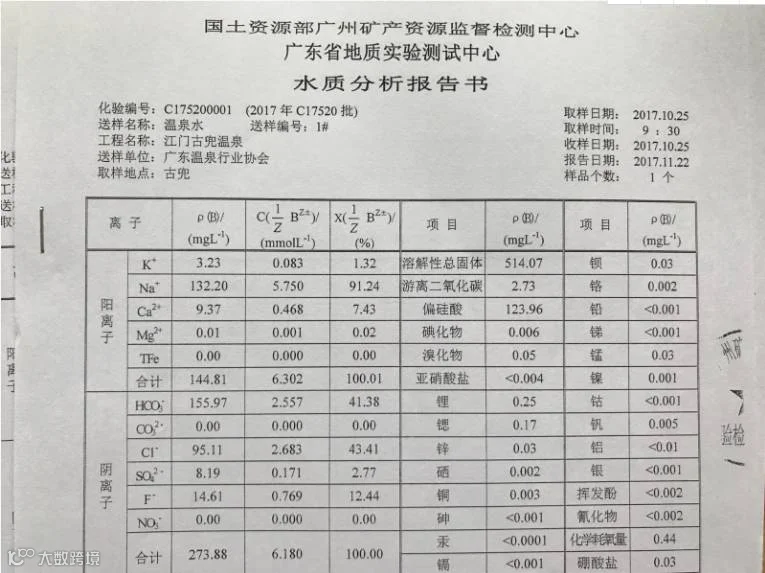 被认证为“真温泉”的企业中, 不少企业的主要指标已优于国标。例如,广东温泉宾馆的抽检结果显示,氟离子含量达9.34(国标为1),偏硅酸达111.45(国标为50),两项指标远超国家标准。
