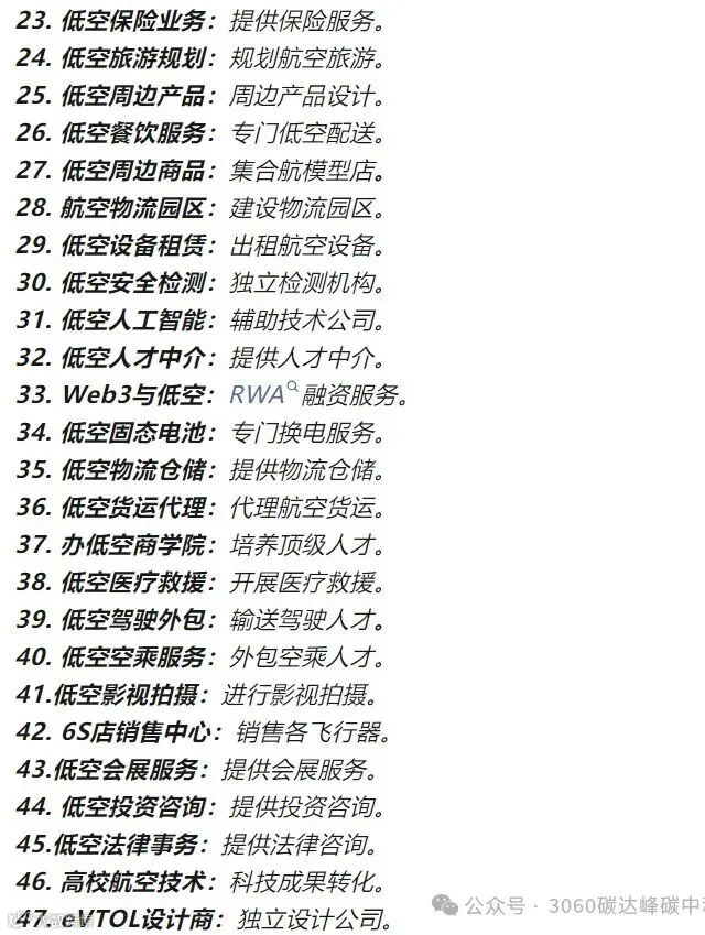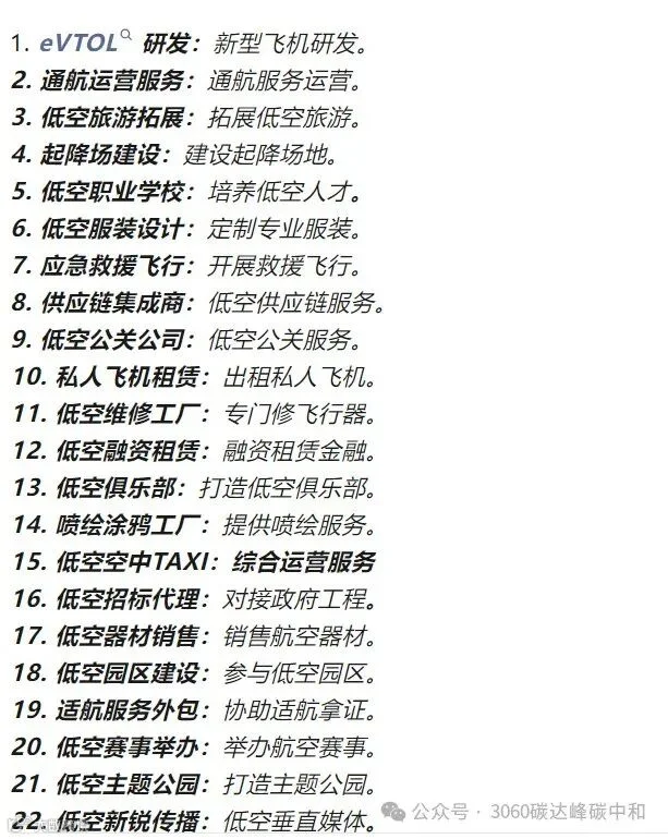 低空经济代表着新的生产力发展方向,已经与经济社会活动融为一体,并不断开拓新的应用场景和商业模式,以显著提高经济社会活动效率和用户体验。公众号:3060碳达峰碳中和。