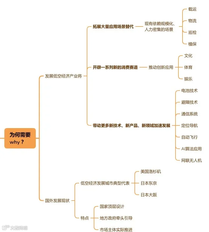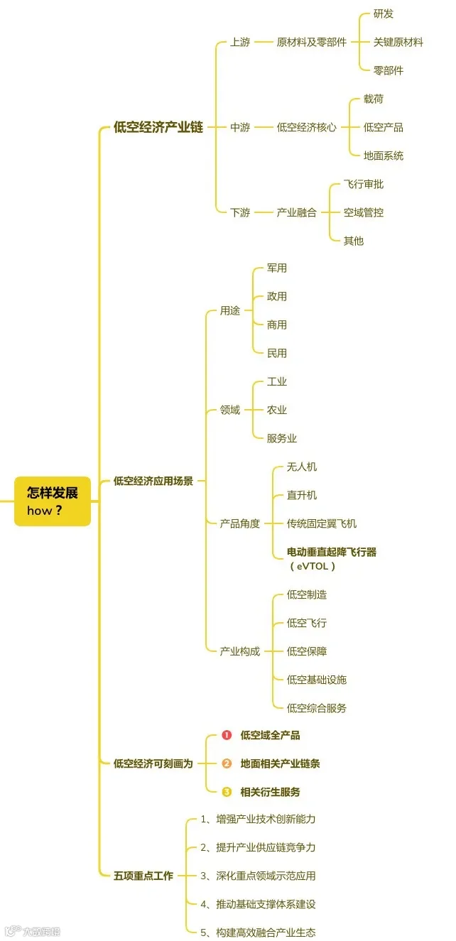 以下用思维导图来梳理这几个问题,希望对大家深入理解低空经济有所帮助。