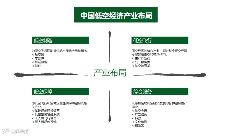 应用场景:包括无人机交通管理、低空空域的监控与管理,以及相关通信与导航设施的开发和运营。