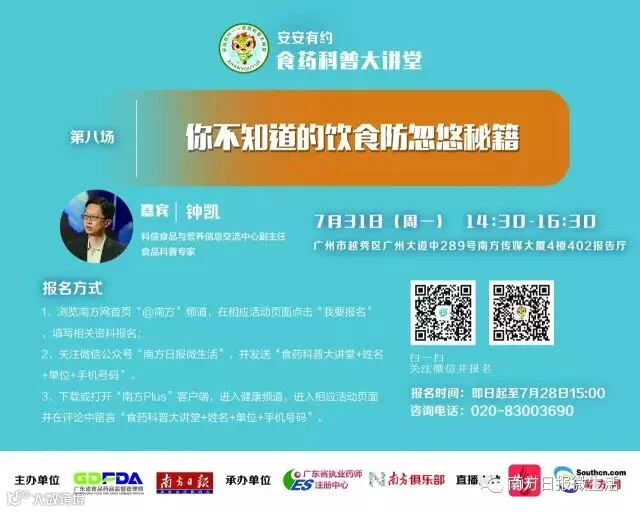 2、关注微信公众号“南方日报微生活”,并发送“食药科普大讲堂+姓名+单位+手机号码”。
