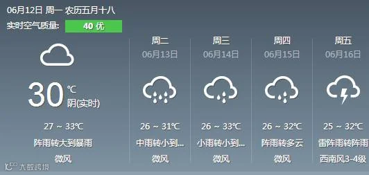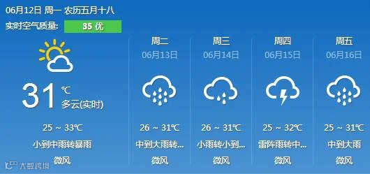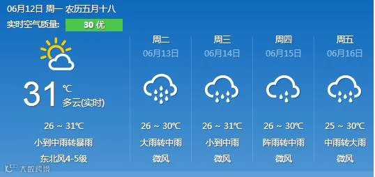 14日到15日,粤北市县有大雨局地暴雨,其余市县有(雷)阵雨。