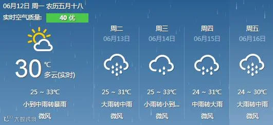 12日下午到13日,粤东、深圳、惠州、东莞、珠海、中山、河源、梅州有暴雨到大暴雨,局地特大暴雨,韶关、广州、佛山有大雨到暴雨,其余市县有(雷)阵雨。