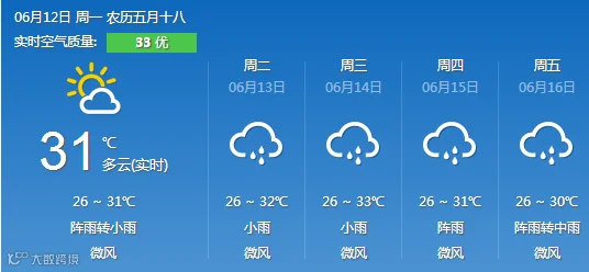 广东部分城市天气预告