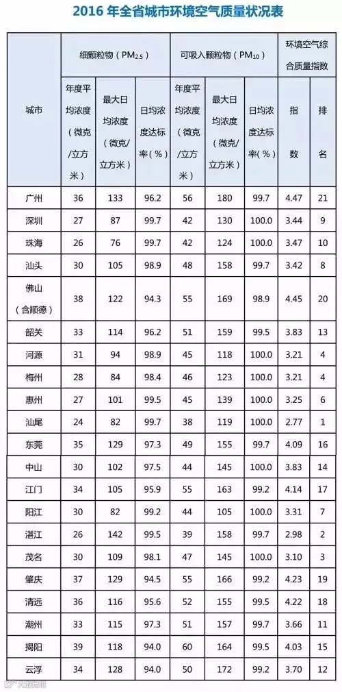 广州排名倒数第一,好兄弟佛山紧随其后倒数第二。其实,2016年广州佛山空气质量全年达标天数都是310,在全国也算是中上水平。