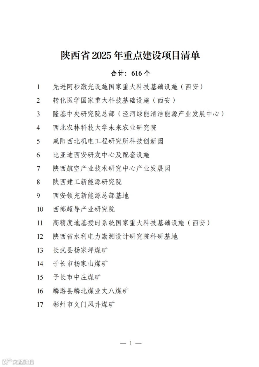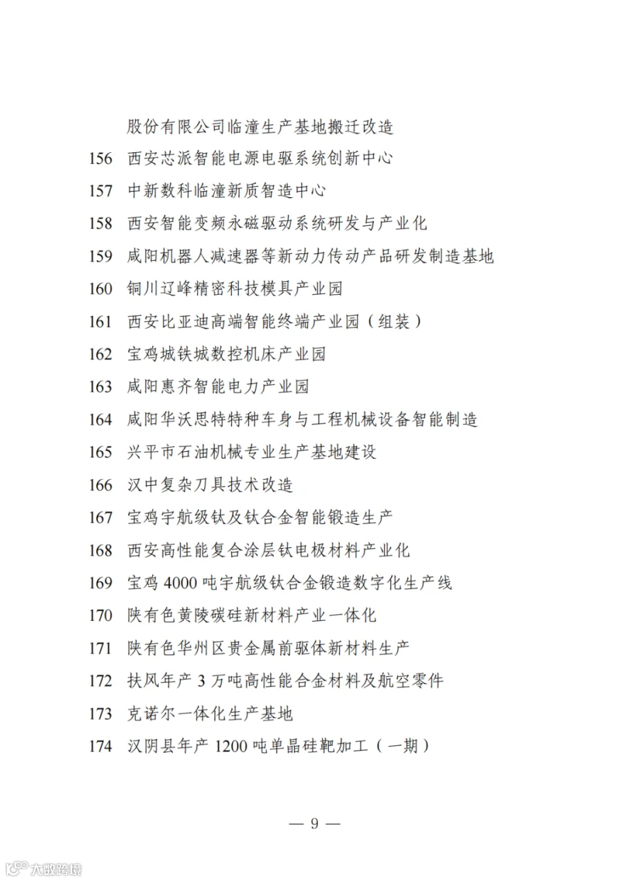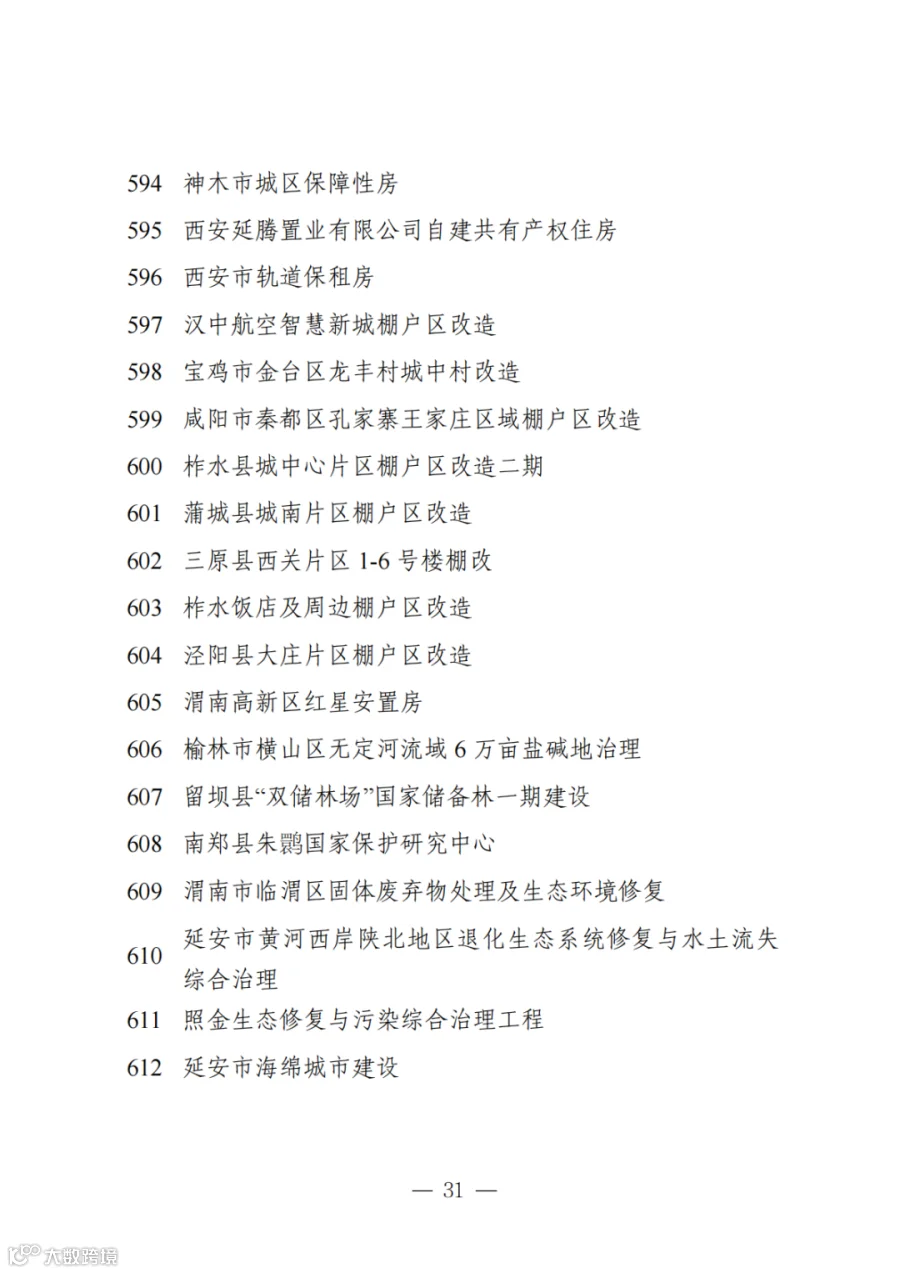 数据名称:省级重大项目-陕西省