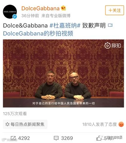 就在刚刚,该品牌的两名创始人在D&G的官方微博上发布道歉视频了!
