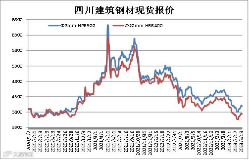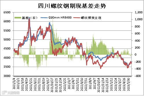 统计数据显示,成都建筑钢材现货价格与上期所螺纹钢期货价格存较强联动性,基差正常波动区间为-100-300元/吨。本期现货价格强于期货价格,6月21日成都Φ20mmHRB400现货价为3760元/吨,RB2310合约期价为3686元/吨,基差为74元/吨,周环比+123元/吨。(备注:基差=现货-期货)