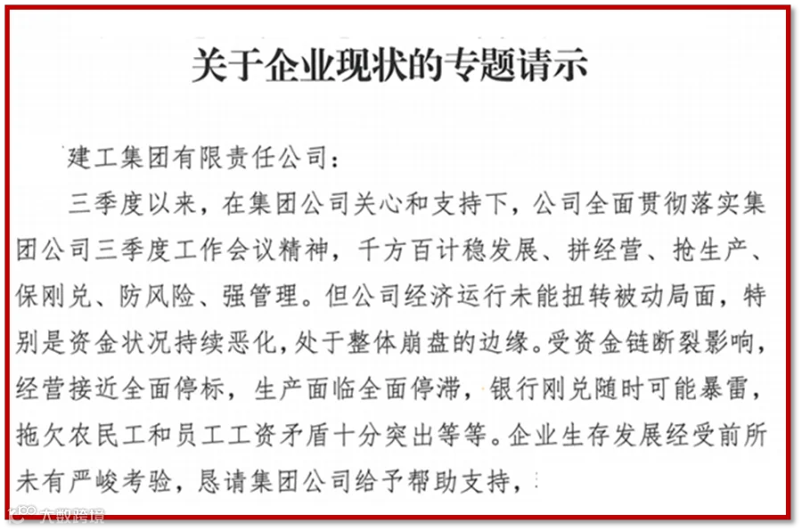 如今,混合所有制企业已经占相当数量,但是混合所有制企业数量的激增并没有转化为国企活力和经营效率的大幅提升,甚至越混越差、陷入经营危机,其中因受房地产崩盘冲击的建工企业尤甚。我们看看某建工集团的请示就可略窥一斑。