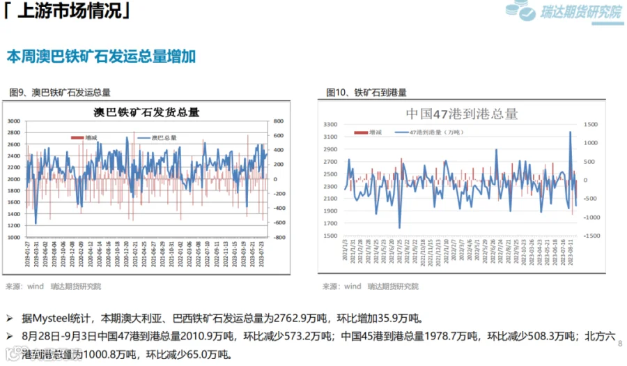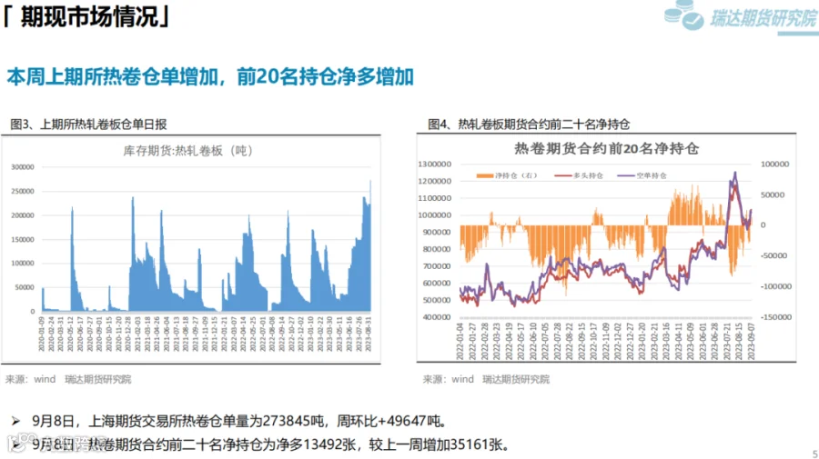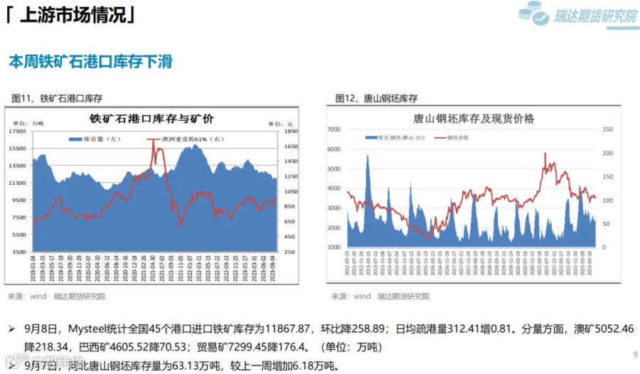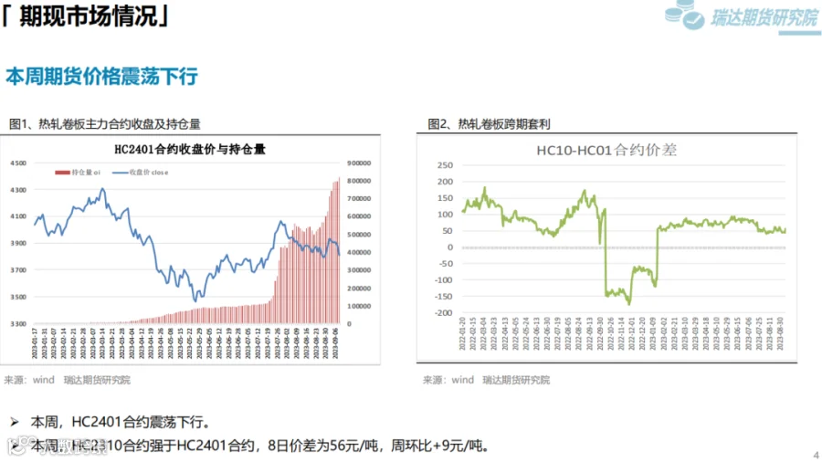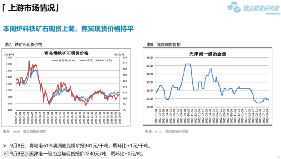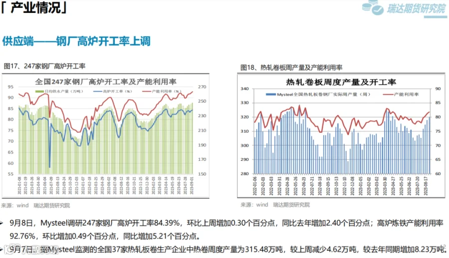 本周(9.1—9.8)热卷价格震荡下行。此前,国内宏观利好政策持续推动热卷价格走高,但随着现货价格大幅上调,终端采购逐步放缓。另外,8月贸易数据表现不佳打压市场信心,而周五在两部门加强铁矿石市场监管影响下,炉料大幅走弱进一步拖累热卷价格。下周(9.8—9.15)供应端,热卷周度产量由增转降,但幅度不大,周度产能利用率维持在80%上方。需求端,库存量小幅回升,下游采购放缓,表观消费量由增转降。最后,国内宏观利好政策对市场信心仍有提振作用,只是近期公布的经济数据弱于预期,同时炉料走弱压低炼钢成本。