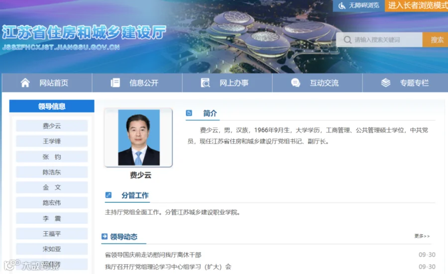 2021.09——,江苏省住房和城乡建设厅党组书记、副厅长。