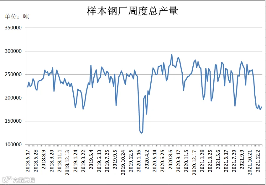 (12月17日-12月23日)四川省钢材流通协会对四家样本钢厂关于建材产量统计数据显示,本周A、C较上周分别增加7000吨、1000吨;D较上周减少2390吨;B持平。四家样本钢厂总产量为180600吨,周环比增加5610吨。