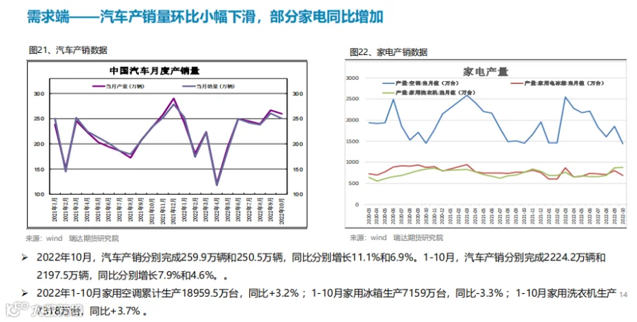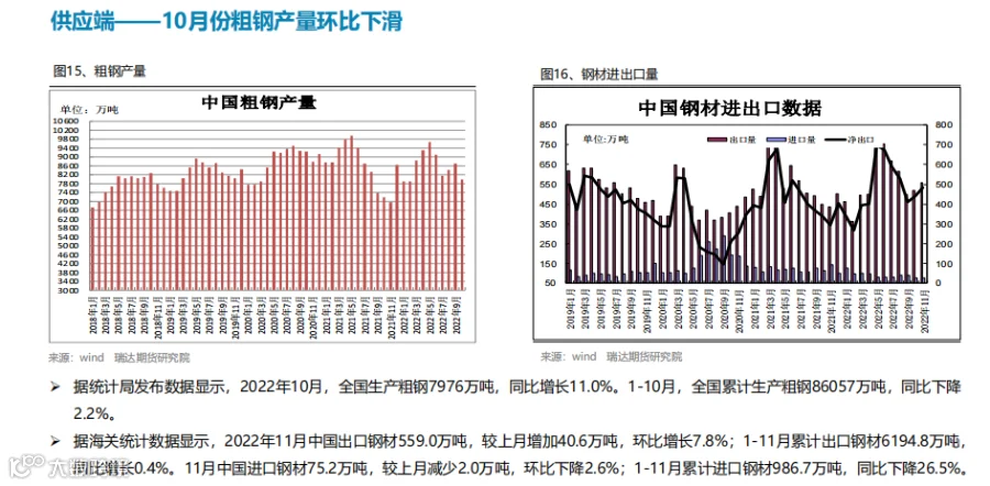 后市展望:供应端,本期热卷周度产量继续提升,主要增幅地区是中南、华北、华东地区,其 中华北、华东地区部分钢厂复产后本周恢复正常生产,供给增量;需求端,厂内库存与社会库存继续小幅下滑,年底赶工及刚需释放;最后,国内宏观面整体向好,对热卷价格仍有支撑作用。