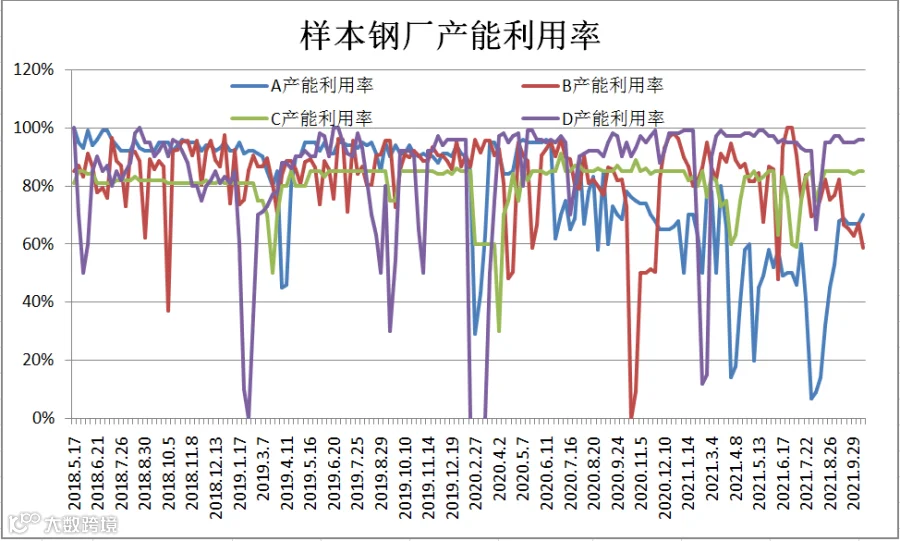 (10月8日-10月14日)四川省钢材流通协会对四家样本钢厂关于建材产能利用率统计数据显示,A较上周增加3%;C、D较上周持平;B较上周下滑8.22%。