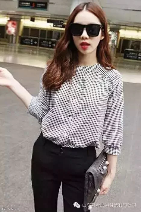 非常清新文艺,学院风的MM必备哦,外搭小西装也非常赞,单穿更不用说了~配外套、长裤,短裙,短裤,都很有范超百搭休闲哦~细碎的小格子设计,更添精致,经典格纹图案,小圆立领很好的结合了本款衣衣